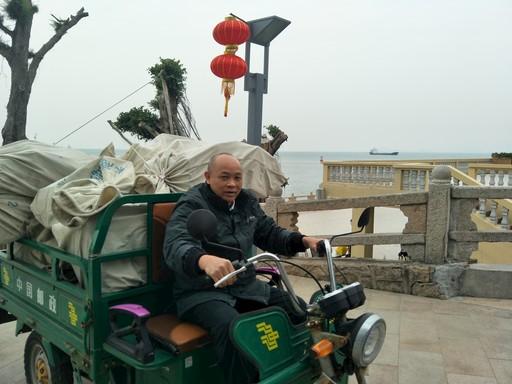 谢坚将刚刚下船的包裹运送回邮政所