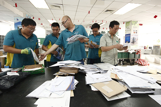 虽说信件多,但是投递部的同志们一起干,很快就能分拣好。