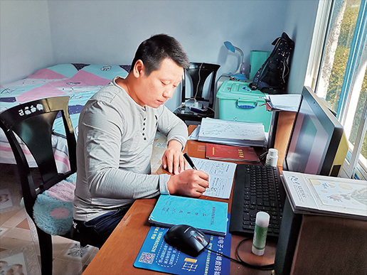 每天走访完毕,余国锋便来到村委会办公室,将走访记录下的信息和问题进行汇总整理。打开记录本,密密麻麻全是贫困户信息:家庭状况、致贫原因、帮扶措施……这是他半年走访下来的成果,也是他为贫困户制定脱贫措施的依据。
