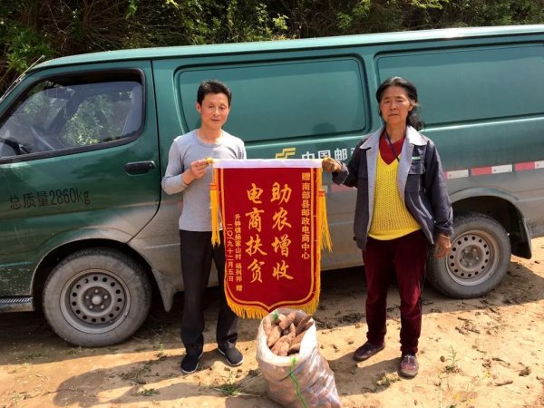 2019年,南部县邮政分公司真的将杨列邦夫妇心中的“不可能”全部抹掉了。在南部邮政的帮助下,杨列邦夫妇的小蜜薯于去年3月开始触“网”,在邮乐网上进行线上销售。不仅如此,县分公司还组织了线下的集中销售,多渠道累计帮助杨列邦夫妇销售小蜜薯 30000余斤。为感谢邮政的帮助,夫妇俩还特意制作了一面旌旗送给县分公司。“电商扶贫助农增收”深刻诠释了邮政服务“三农”的国企担当。