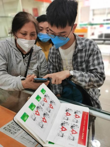 5月11日一大早,在旌阳区长江西路集邮大厅首发现场,540套《众志成城 抗击疫情》邮票不到1个小时售罄,但仍有不断前来的集邮爱好者,咨询还有什么渠道能够购买。一位热心青年指导中老年集邮爱好者通过中国邮政微邮局微商城网上预约订购方联和首日封。(廖玲)