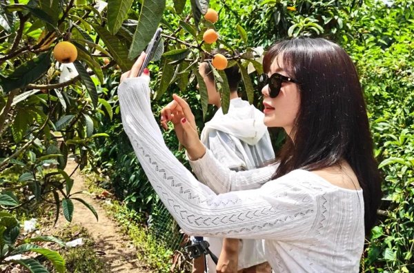 各地游客来到现场体验枇杷采摘