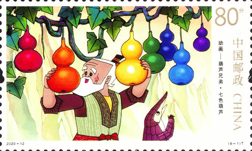 《动画—葫芦兄弟》邮票的6枚图案名称分别为:七色葫芦、梦窟迷境、绝路逢生、水火奇功、巧夺如意、七子连心,是中国邮政发行、宋鉴设计的第三套动画题材邮票。前几年发行的《小蝌蚪找妈妈》和《动画—〈大闹天宫〉》两套动画题材邮票均为宋鉴设计。