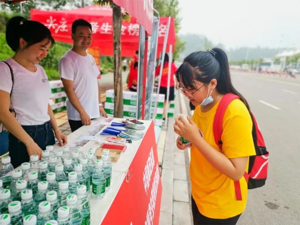 考生在爱心志愿点免费领取饮用水