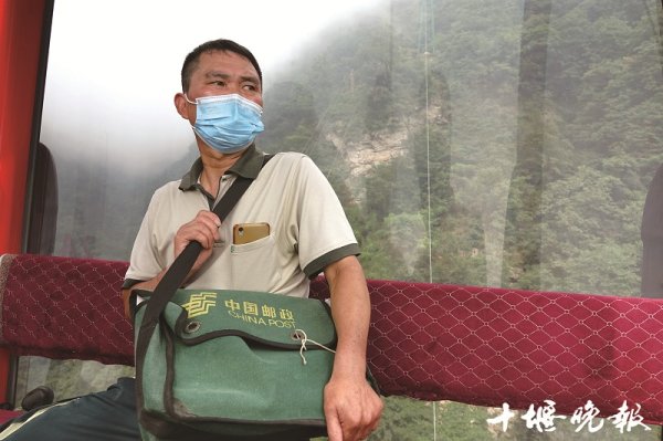 8月5日,星期三。上午9点半,在云雾缭绕的武当山索道吊箱内,57岁的武当山邮政支局邮递员齐建国随着匀速上升的吊箱,穿过茫茫云海,直奔金顶。