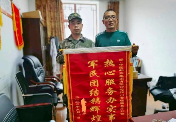 面对送来的锦旗,理塘县邮政分公司工作人员表示,锦旗不仅意味着对邮政工作的一份认可,更是一份责任和担当,我们将继续为部队官兵提供高效、快捷、贴心的军邮服务。