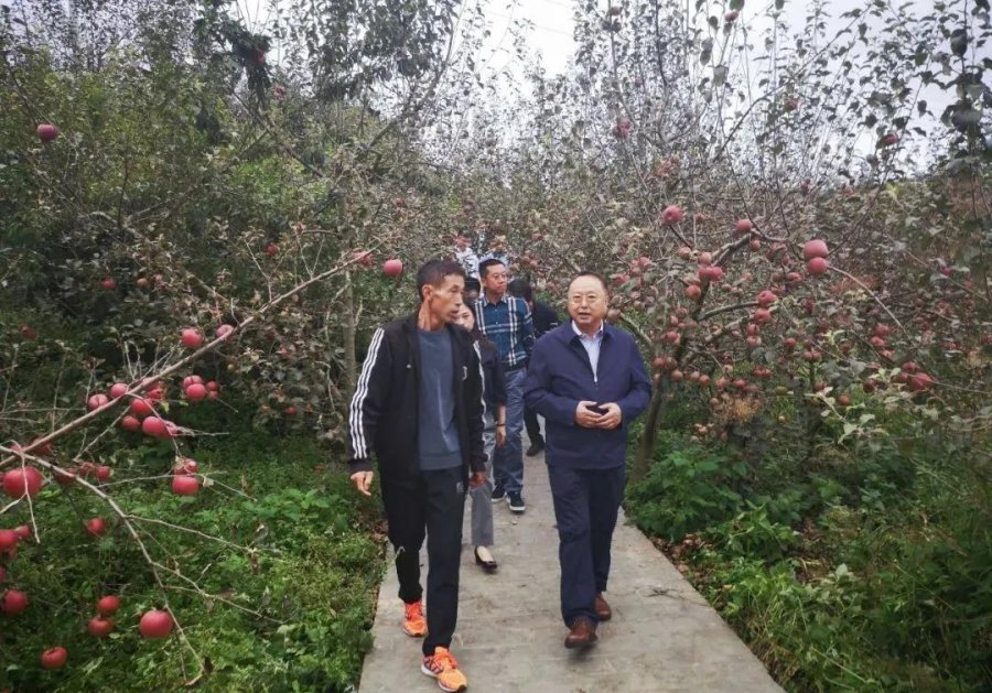 廖涛与汉源大渡军红种植合作社负责人交流