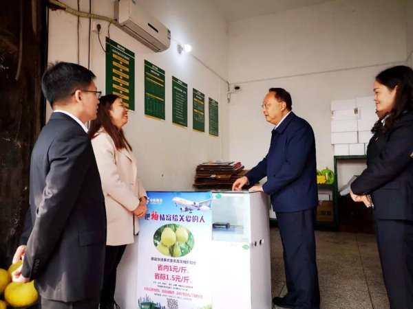 廖涛总经理在刘山红丰蜜柚专合社蜜柚打包现场详细了解蜜柚销售情况