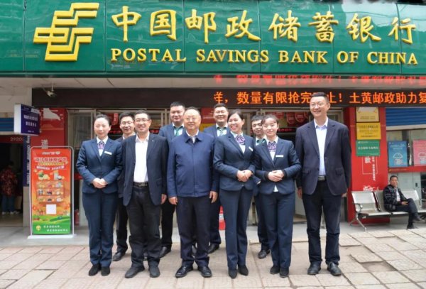 廖涛在土黄邮政营业所调研,与网点员工合影。