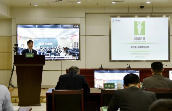 11月16日下午,中国邮政集团有限公司四川省分公司举办“川邮讲堂”(第四期)专题讲座。讲座围绕金融攻坚克难主题,通过电视会议+网络直播(中邮网院APP)方式进行。省分公司在家领导在主会场参加讲座,副总经理王彦超主持讲座。
