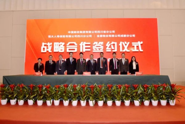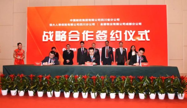 1月26日,四川邮政、恒大人寿、金碧物业签订战略合作协议。中国邮政集团有限公司四川省分公司党委书记、总经理廖涛,恒大人寿保险有限公司四川分公司总经理张文波,金碧物业有限公司成都分公司总经理蒲军出席签约活动并致辞。中国邮政集团有限公司四川省分公司党委委员、副总经理王彦超,恒大人寿保险有限公司四川分公司副总经理文轲,金碧物业有限公司成都分公司副总经理许尔亮作为代表签订协议。三方将发挥各自的渠道、服务、产品资源优势,强强联合,服务于民,推动基本公共服务均等化,实现互利共赢。