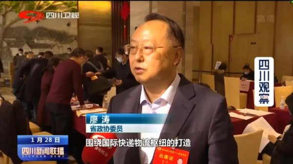 廖涛参加2021四川省“两会”,在接受四川电视台记者采访时表示,将打造邮政“川渝大同城”寄递网,建设国际物流枢纽。