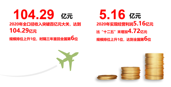 “十三五”期间,我们认真贯彻新发展理念,积极应对市场竞争,有序推进改革创新,企业发展稳中求变,变中有进、进中提效,较好完成“十三五”规划主要目标任务,为新阶段高质量发展走在全国前列奠定了坚实基础。2020年完成全口径收入突破百亿大关,达到104.29亿元,规模排位时隔三年重回全国第6位。“十三五”收入年均增幅9.94%,邮政公司收入完成规划目标115.53%。代理储蓄余额规模迈上4000亿台阶。2020年超预期实现利润5.16亿元,列全国第6位,比“十二五”末增加4.72亿元。坚持在发展中保障和改善民生,从业人员人均年收入年均增幅8.39%。