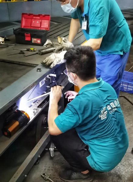 室内高温难耐,成都邮区中心局运维中心维修人员一直坚守,认真维修机器,全然不顾满身的汗水。(李有强 杨建)
