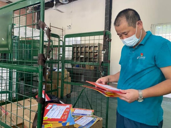 8月3日中午,投递员张雪静在高温下仔细核对收件人信息。她说:“疫情下我们投递员是与市民接触最多的,做好疫情防控,及时投递邮件,是我对客户的承诺。”