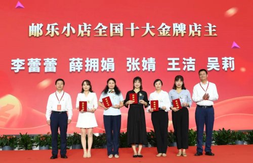 启动仪式上,张金良、戴应军、李富君、李刚向邮乐小店全国十大金牌店主颁发奖杯和证书。邮乐小店是中国邮政推动农产品进城、带动邮乐平台发展的重要工具,通过邮乐小店店主的社交裂变,可提升农品销量,帮助农民增收获利,助力乡村振兴战略有效落地。截至目前,中国邮政累计培育了130万名邮乐小店店主。