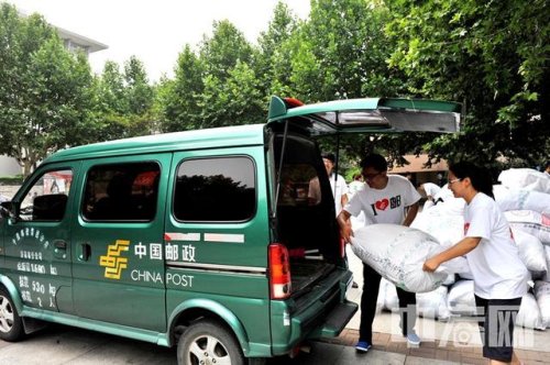 济南大学向邮车上装学生包裹 崔鹏森摄