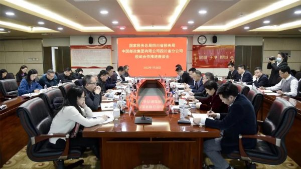 1月26日,中国邮政集团有限公司四川省分公司与国家税务总局四川省税务局联合召开税邮合作推进会议。四川省税务局党委书记、局长李杰,党委委员、总经济师董光晖,四川省邮政分公司党委书记、总经理廖涛,党委委员、副总经理王彦超出席会议。