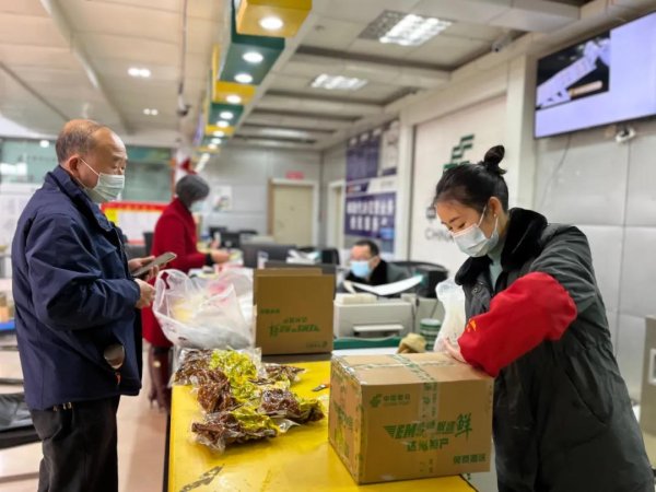 达州市通川区翠屏路邮局大厅里,客户络绎不绝,他们拎着大包小包的腊肉、香肠,通过邮寄将家乡的年味送到在外的游子手中。“我要寄到湖北武汉,能寄吗?”“可以的,您是寄给亲人吗?”“对呀,寄给我女儿、我外孙。女儿在武汉工作,本来说今年回来过年,因为疫情回不来了,我就寄点家里的特产给她。”李大爷边说边把香肠腊肉、卤味拿出来。李大爷通过邮政极速鲜给女儿寄了整整15公斤腊肉香肠和卤味,让女儿一家人好好品尝家乡味道。
