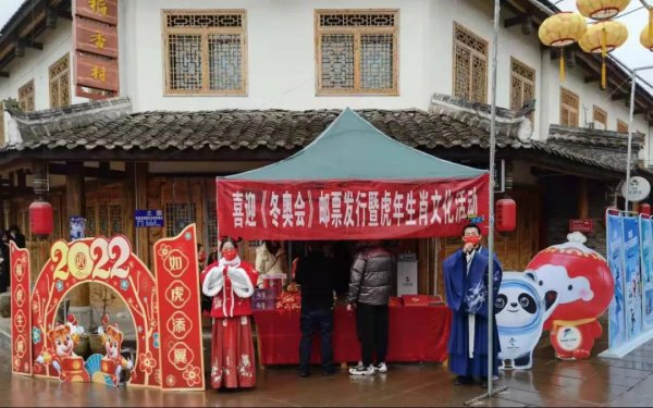 2月5日,广元市昭化区邮政分公司在昭化古城设立快闪主题邮局,开展喜迎《冬奥会》邮票发行暨虎年生肖文化活动,吸引了大批游客打卡拍照,寄语冬奥写书信。