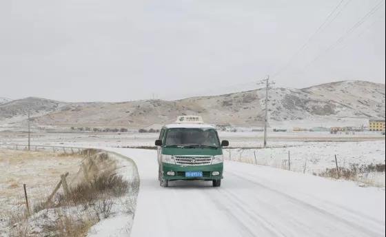 凛冽的寒风肆无忌惮地呼啸,大草原上一片银装素裹。然而,就在这幅白色画卷上,不时闪现出充满生机的绿——身着邮政标志服的若尔盖县邮政分公司乡村投递员哈弄夺机和同事们忙碌的身影。虽然风霜在哈弄夺机的脸上刻下了岁月的痕迹,但这个浓眉大眼、鼻梁高挺的帅小伙仍透出一身英气,很难让人相信他已年近不惑。邮件装了满满一车,出发前,哈弄夺机用抹布小心翼翼地擦去邮车上的积雪。他要让村民们远远就能看见这一抹耀眼的绿。
