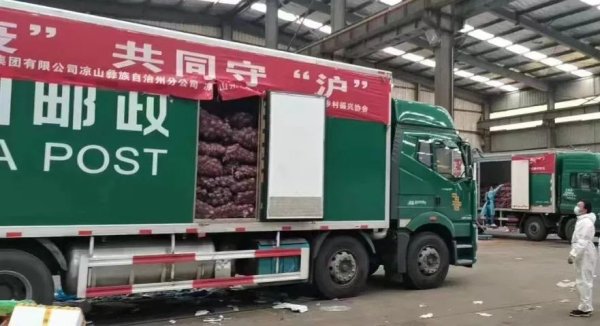 4月14日,由中国致公党四川省委员会、凉山州委统战部、邮管局、消费协作联合会、乡村振兴协会一同筹集的42吨新鲜蔬菜,交由凉山邮政三辆“爱心大邮车”紧急运送上海,支援抗疫。
