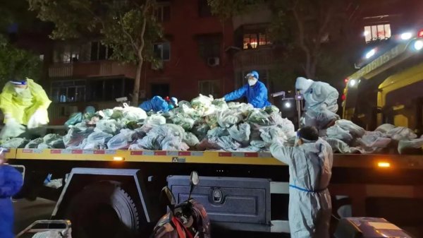 顾不上连日赶路的辛苦,他们马不停蹄与工作人员对接,迅速投入到蔬菜转运工作中。