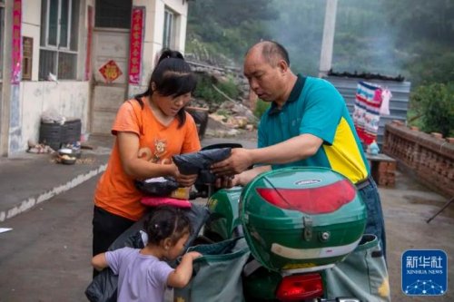 在山西省壶关县大峡谷镇师家背村,赵月芳为村民送件(7月14日摄)。新华社记者 杨晨光 摄