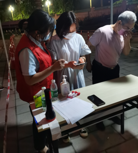 晚8点,只见郭春梅在望江水岸小区帮忙维持核酸检测秩序,苟玉华运输一批应急灯到大慈寺社区,缪静一路奔波在各个小区服务站,曾港刚脱下防护服又忙着去柳江社区分装防护服和口罩……