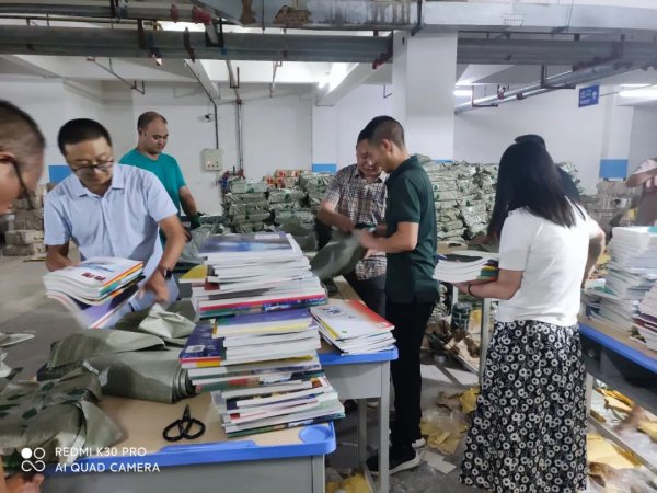 9月9日下午2点,叙永县邮政由各部门抽调的工作人员共30余人组成突击队,赶到叙永县第三中学,和学校老师们一起分类、打包教材。配书、打包、封装......现场一片热火朝天,大家分工明确,忙碌而有序。