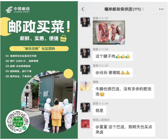对于客户提出的问题和需求,保供团队也会一一记录并及时回复客户。“很多客户起初都是尝试着选购,到今天快半个月了,客户们是真正的信任我们,信任邮政品牌!”来自锦江区邮政分公司的团长邓雪梅始终把客户放在心尖上。客户们纷纷表示,疫情结束了还会继续选择邮政团购。