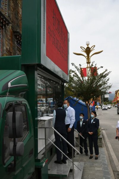 9月16日,廖涛在泸定磨西邮政流动服务车了解金融营业情况。