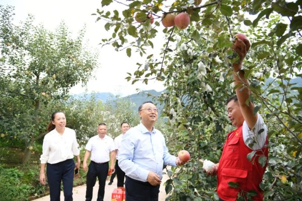 9月17日,廖涛在雅安市汉源县强盛园水果种植专业合作社调研邮政服务乡村振兴工作。