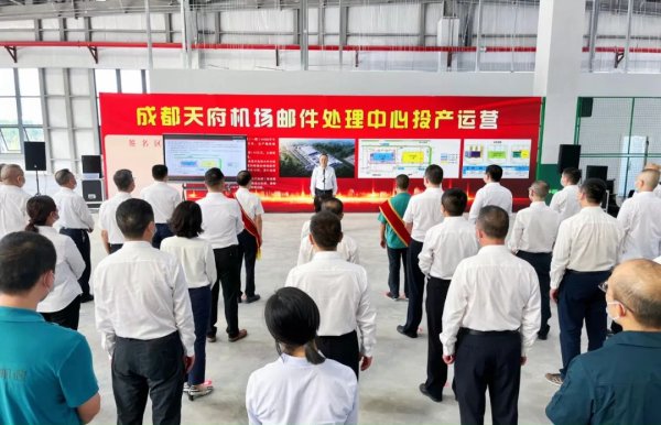 在喜迎中华人民共和国成立73周年、党的二十大即将胜利召开之际,9月28日下午,新落成的成都天府机场邮件处理中心,四川省邮政分公司党委书记、总经理廖涛郑重宣布:“中国邮政成都天府机场邮件处理中心投产运营!”这标志着位于简阳市空港大道的成都天府机场邮件处理中心全面进入运营阶段,对于四川邮政网络能力跃上新台阶,打造行业“国家队”,服务四川经济社会发展,具有重大而深远的意义。