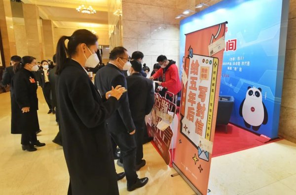 1月15日,川观新闻联合熊猫邮局推出的“时光邮局·给五年后的自己写一封信”品牌活动,亮相四川省两会。在省十四届人大一次会议闭幕式的场外活动现场,代表们热情参与,将自己的真情实感写进信中,并盖上当日纪念戳投入信箱。