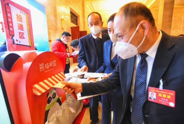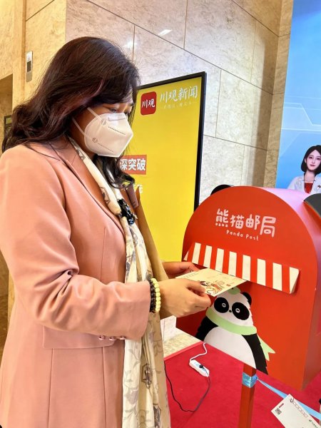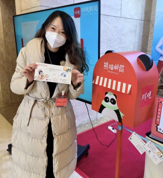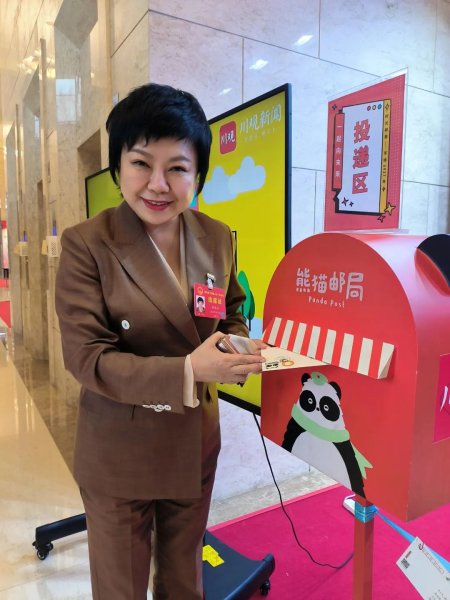 说话间,“胖姐”将信笺封存,并在信封上盖上了“来自2023四川省两会”的专用印章,随后投递到熊猫邮局的信箱里。