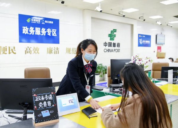 “请在这里签字确认,您可以选择政务专递免费寄,邮政将为您送件到家。”市民秦先生当天在暑袜街邮政支局办理企业注册登记时,工作人员热情地介绍道。