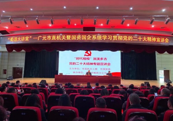 为深入学习宣传党的二十大精神,进一步深化邮政企业与地方党委之间的联系,3月24日,广元市邮政分公司特别邀请党的二十大代表、全国劳动模范、全国优秀共产党员、“时代楷模”其美多吉同志走进广元市直机关工委、国资委及广元邮政系统作专题宣讲,为大家作了两堂鲜活生动、内涵丰富的党课报告。