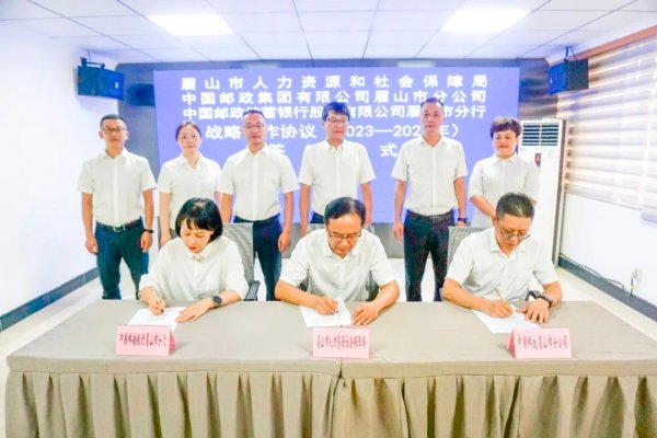 7月25日,眉山市人力资源和社会保障局、眉山市邮政分公司、邮储银行眉山市分行三方签订2023-2025年战略合作协议。