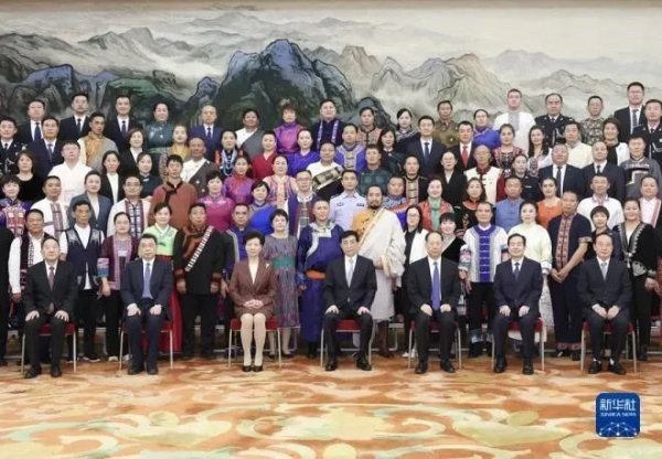 9月29日,在人民大会堂,中共中央政治局常委、全国政协主席王沪宁在京会见全国少数民族参观团,并与其美多吉亲切握手,称赞其美多吉是“中国邮政的名片”。