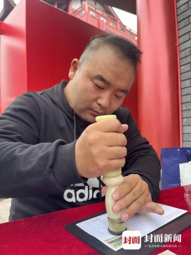 11月8日一大早,拿到苏轼邮票,36岁的李磊高兴不已。此前一天,他从许昌出发,坐了17个小时的火车来到眉山。