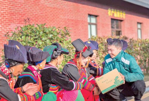 邮政小哥将包裹送到彝族同胞手中。  □吴敏 摄
