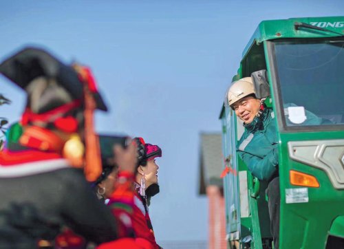 “阿咪子”见到邮政小哥到来,开心地与他交流。□吴敏 摄