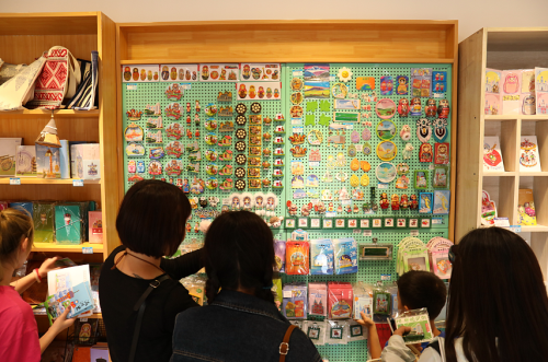 在俄式风情拉满的套娃主题邮局,采访组一行看到了套娃形状的邮筒、手绘套娃、套娃明信片、邮折、笔记本、冰箱贴等产品,这些产品吸引了很多小朋友的眼球。来自山东的中学生张同学对一款做工精美的套娃爱不释手:“感觉来到这里就像到了俄罗斯,这里的套娃都太精美了,每一款都想要!”
