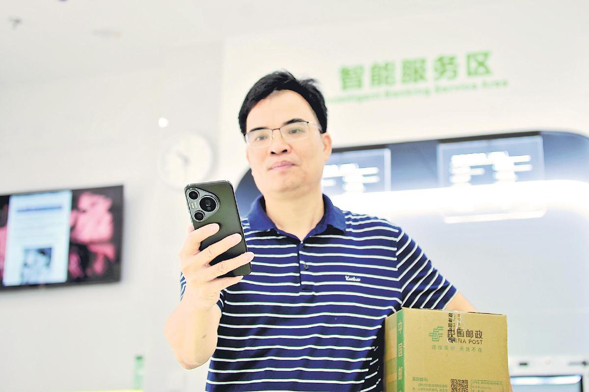支局周围的商户常常会来自助寄件。在附近做了十多年电子产品生意的吴先礼是这个网点的常客。说起网点的变化,他很有感触:“以前来这个营业点寄东西,人多的时候要等不少时间;现在我提前在手机上下单,来了直接寄,像是自己家里有邮局,非常方便!”