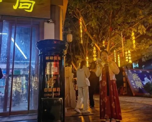 洛阳汉服邮局推出的妆造更吸睛,沉浸式体验精致华裳的同时,感受一下中国传统美学与文化魅力。拍完美美的照片,也不用担心来不及归还服装,到附近的邮政营业厅寄回去就可以。