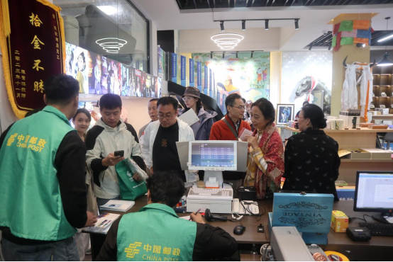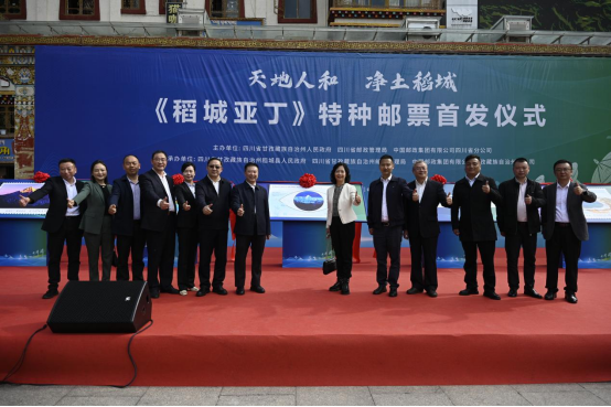 在主会场康定市,与会领导为《稻城亚丁》特种邮票和首日封揭幕,并填写首日封,开启首发日实寄活动。各地集邮爱好者来到活动现场拍照打卡,走进康定邮局,排队购买邮品,畅享集邮乐趣。