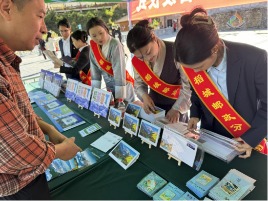 在分会场稻城亚丁景区,同样热闹非凡。来自当地民族歌舞团的小伙姑娘们载歌载舞,以设置集邮展览区、举办集邮知识问答、加盖亚丁纪念邮戳等活动,吸引众多邮迷、游客参与其中,让大家近距离参与到邮票首发的庆祝活动中来,感受《稻城亚丁》特种邮票的文化魅力。