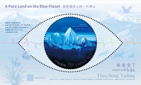 《稻城亚丁》特种邮票画面简洁、主题突出,生动呈现雪域高原绝美风光,向全世界展示圣洁甘孜自然与人文景观的多样性与独特性,展现了当地丰富的旅游资源和深厚的文化底蕴。