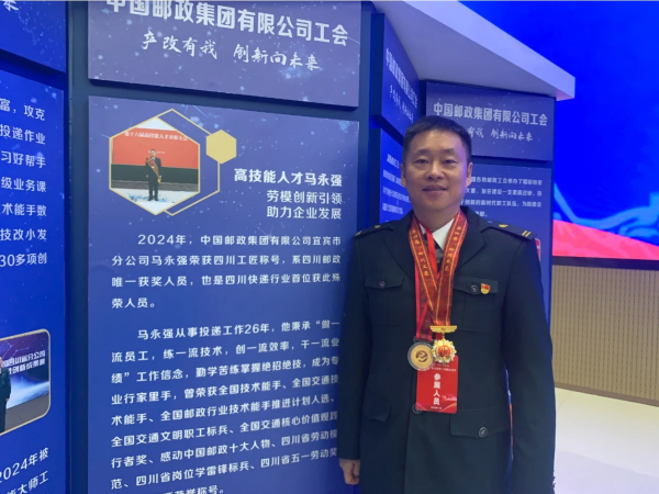 全国技术能手、四川工匠马永强亮相邮政展区,展示邮政高技能人才优秀形象,并宣传邮政。
